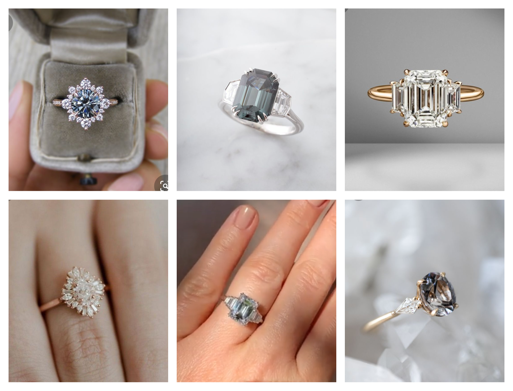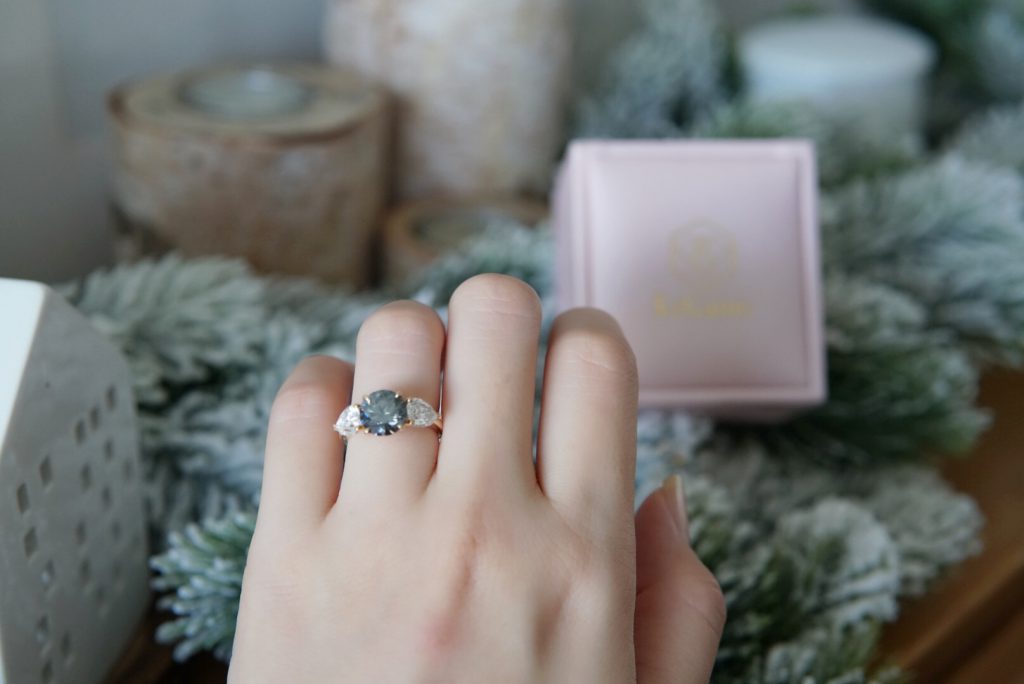 At the end of the day, I set my eyes on a 2-carat round-cut grey moissanite that has a rainbow-like sparkle. The gemstone also changes from mystical grey to a beautiful shade of steel blue-grey under broad daylight like a chameleon.