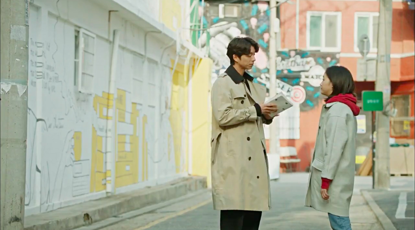 This yellow graffiti wall appeared in the drama where Eun Tak was blowing off the flames on her burnt squid snack and accidentally summoned the goblin. For those who’re wondering, this place is the same location where Kim Woo Bin filmed his Maxim coffee CF. It is called the Mocca Bookstore 모카책방 and was demolished after the filming. You may still see the graffiti at the location, though.