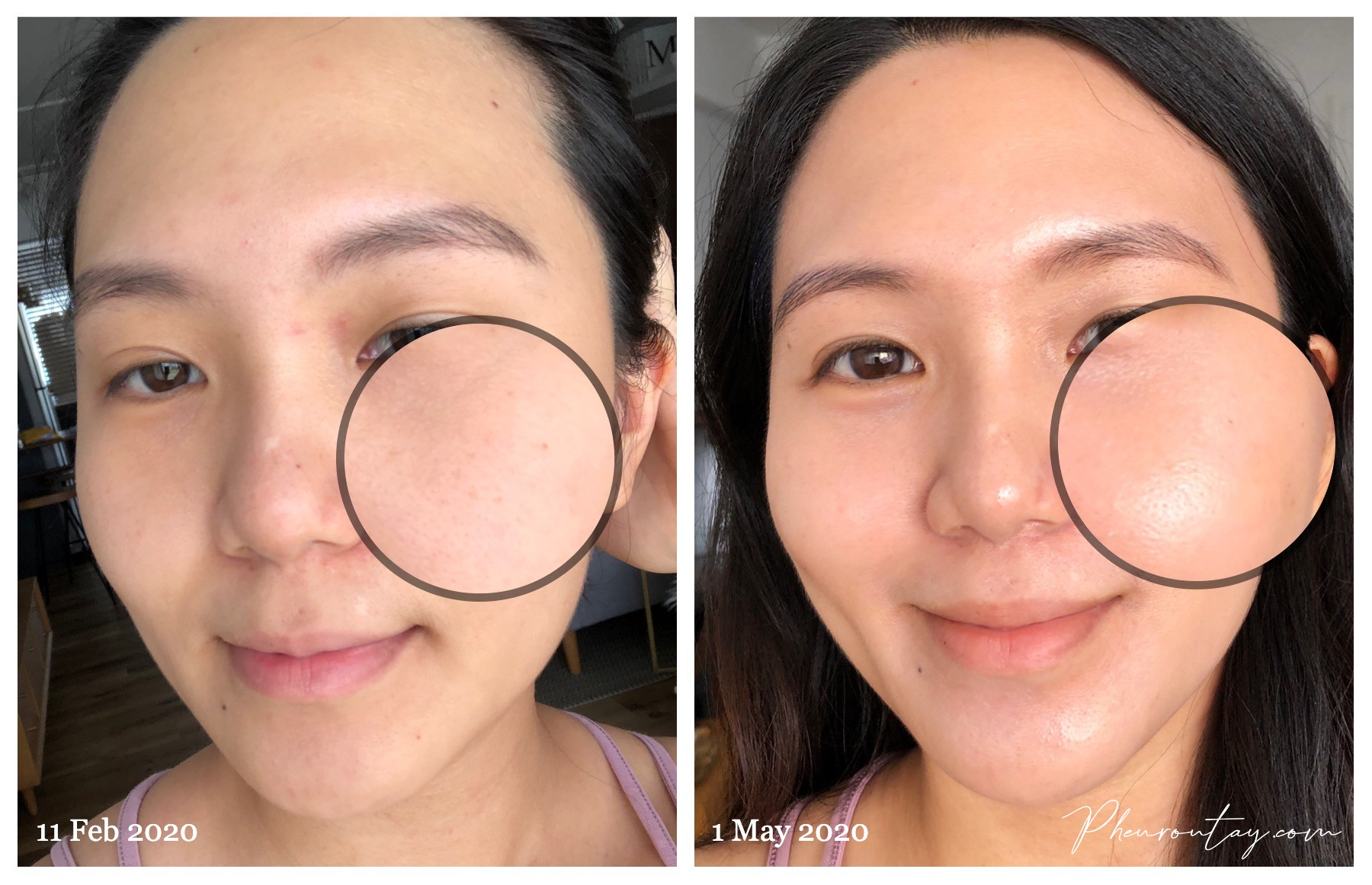 My skin is no longer irritated, my stubborn blackheads and the rashes around the side of my nose have been reduced significantly, and so do the oil clogs under my eyes. More importantly, the light pigmentation on my left cheek that was captured on 11 February 2020 has disappeared completely without any expensive and time-consuming aesthetic treatments! I finally see the glowy skin effect without having to wear makeup at all.