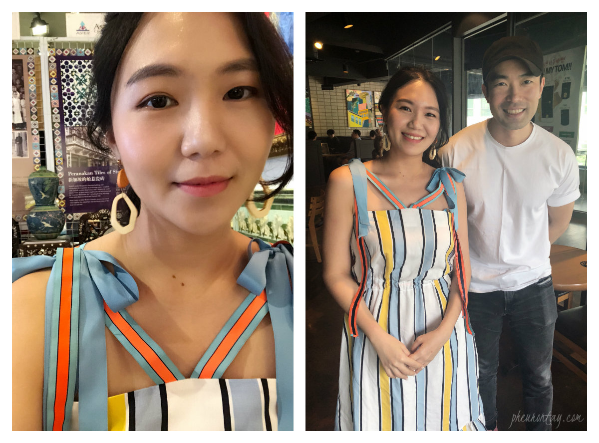 Writer’s Note: I made a wood earring and a sky blue colour suede bracelet during the session. I do not have photos of the bracelet but I do have photos of me wearing the lovely wood earrings. The dangling wood pieces somehow make my face looks smaller. It makes a perfect accessory for my summer dresses! I matched it with my LIE SS18 stripped dress with ribbon when I met up with the designer of the dress, Mr. Chung Chung Lee when he was in Seoul.