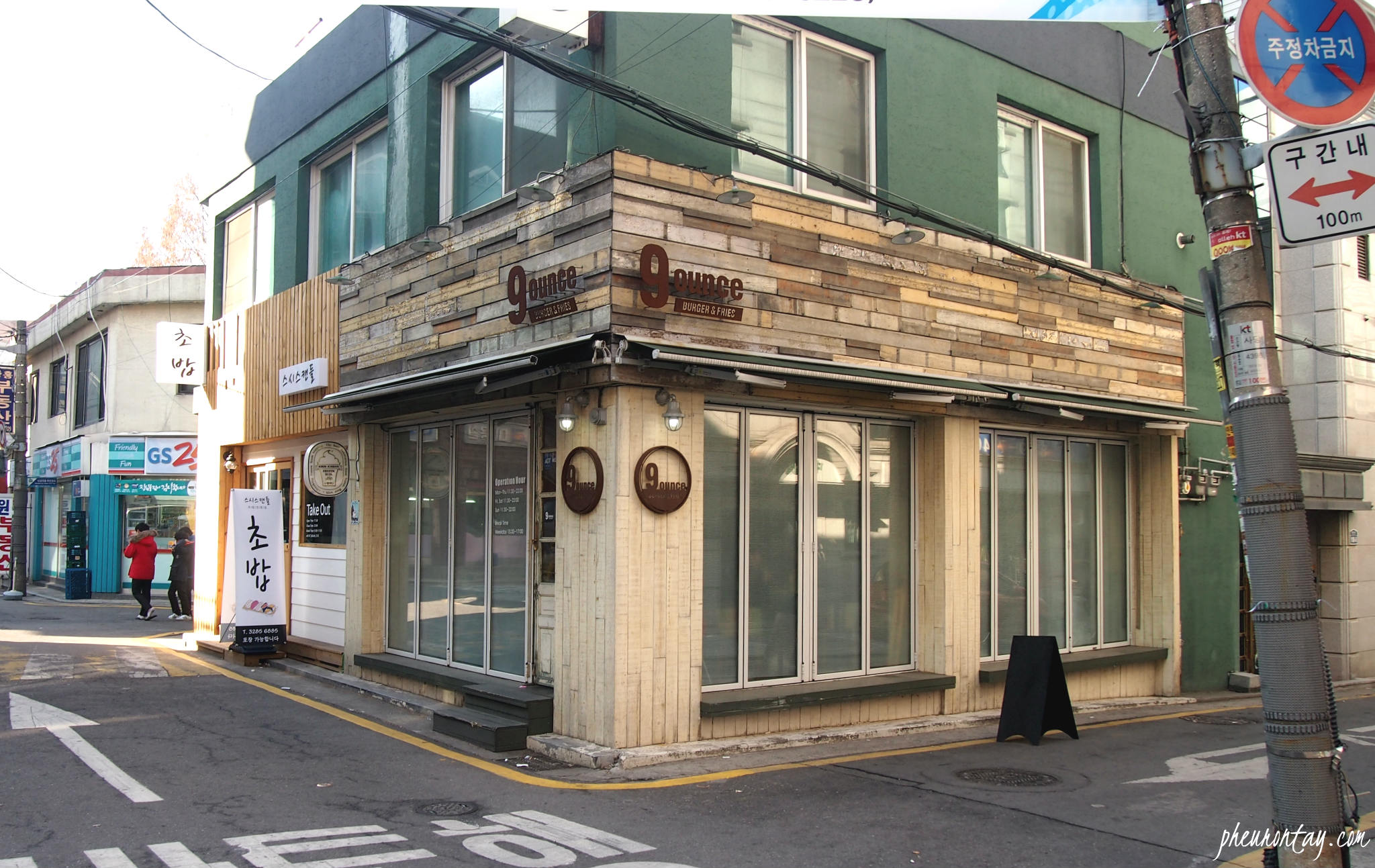 Lol. That is a direct quote from one of my friends who recently went to the place with me. That sounds quite exaggerated, but I would say it captures the gist of how I felt on my first visit. So here comes my posting about 9 ounce Burger (나인온스버거) near Naksongdae Station (Line 2, 낙성대역). The photos in the post are a compilation of my various visits, ranging from 2 weeks ago (Spring 2015) to Autumn 2014.