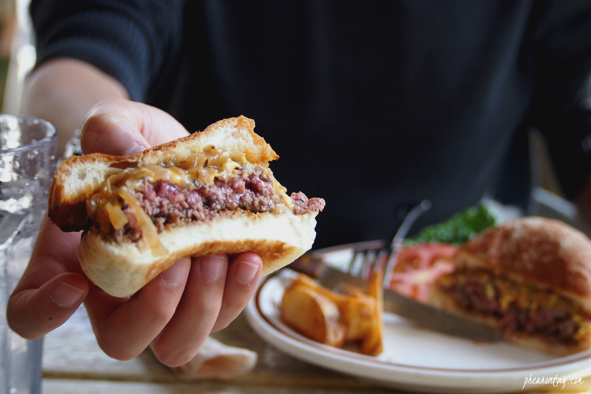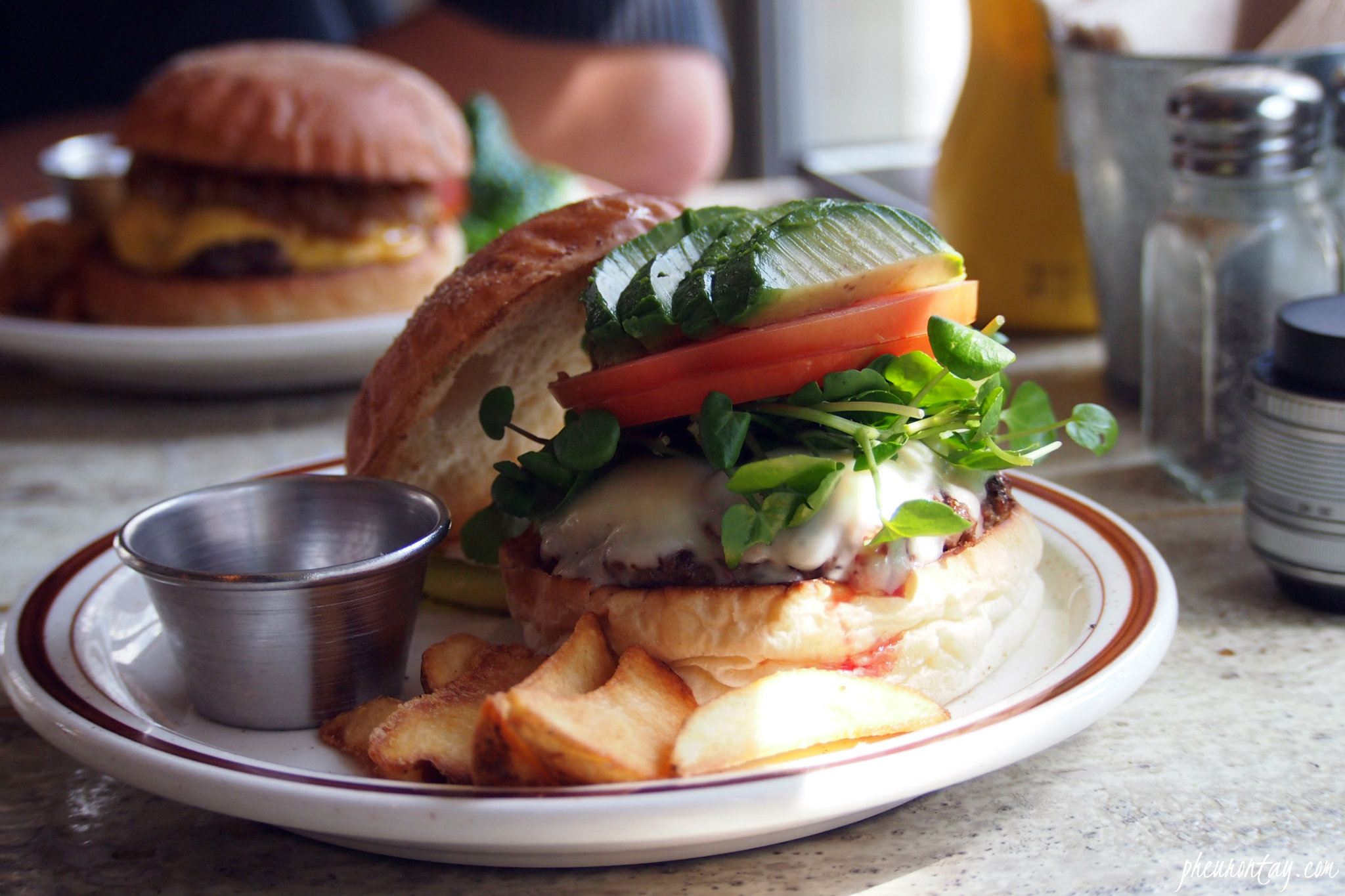 My first visit this year (2015) was in early spring. It was a weekday with lovely sunshine — the best reason for some real burgers? My date and I enjoy the place and shortly after a week, I visited the place again with K and another friend. Three of us couldn’t resist but order their signature 9 Ounce burger (Again!). I decided to go for 9ounce Junior, which comes in a smaller bun with four or five tiny fries; the guys have gone to great lengths to prove their masculinity. Two set meals, with regular fries, a burger and a soft drink each.