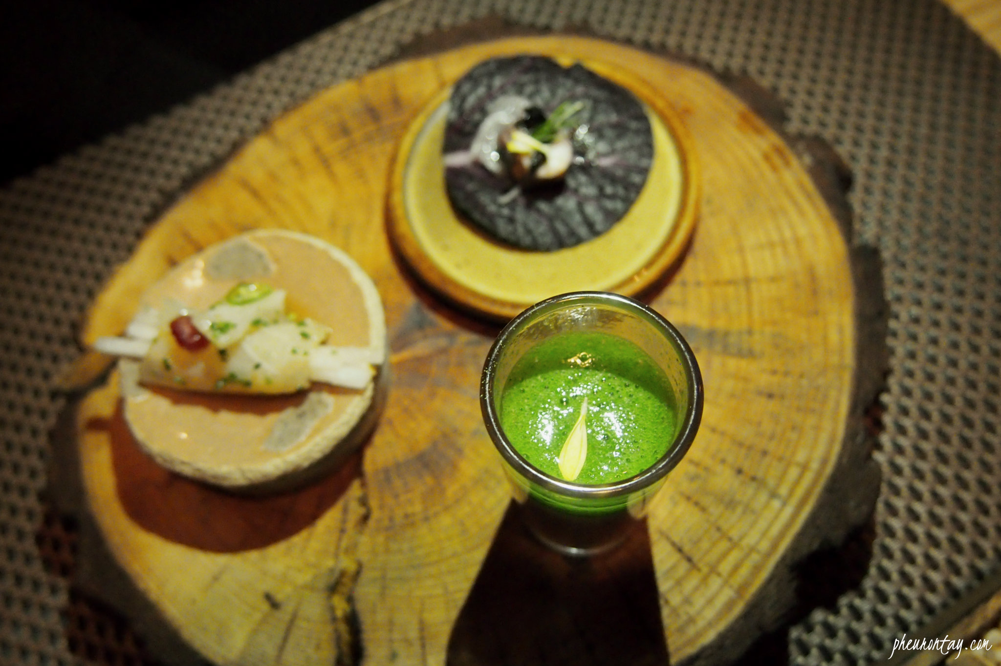 Seasonality. First on the table were three cold dishes: flounder fish, veggie wraps, strawberry puree and chives shot. A little bit of everything from the forest to the sea, I love how all the elements work together, so clean and refreshing it wakes my taste buds for the night.