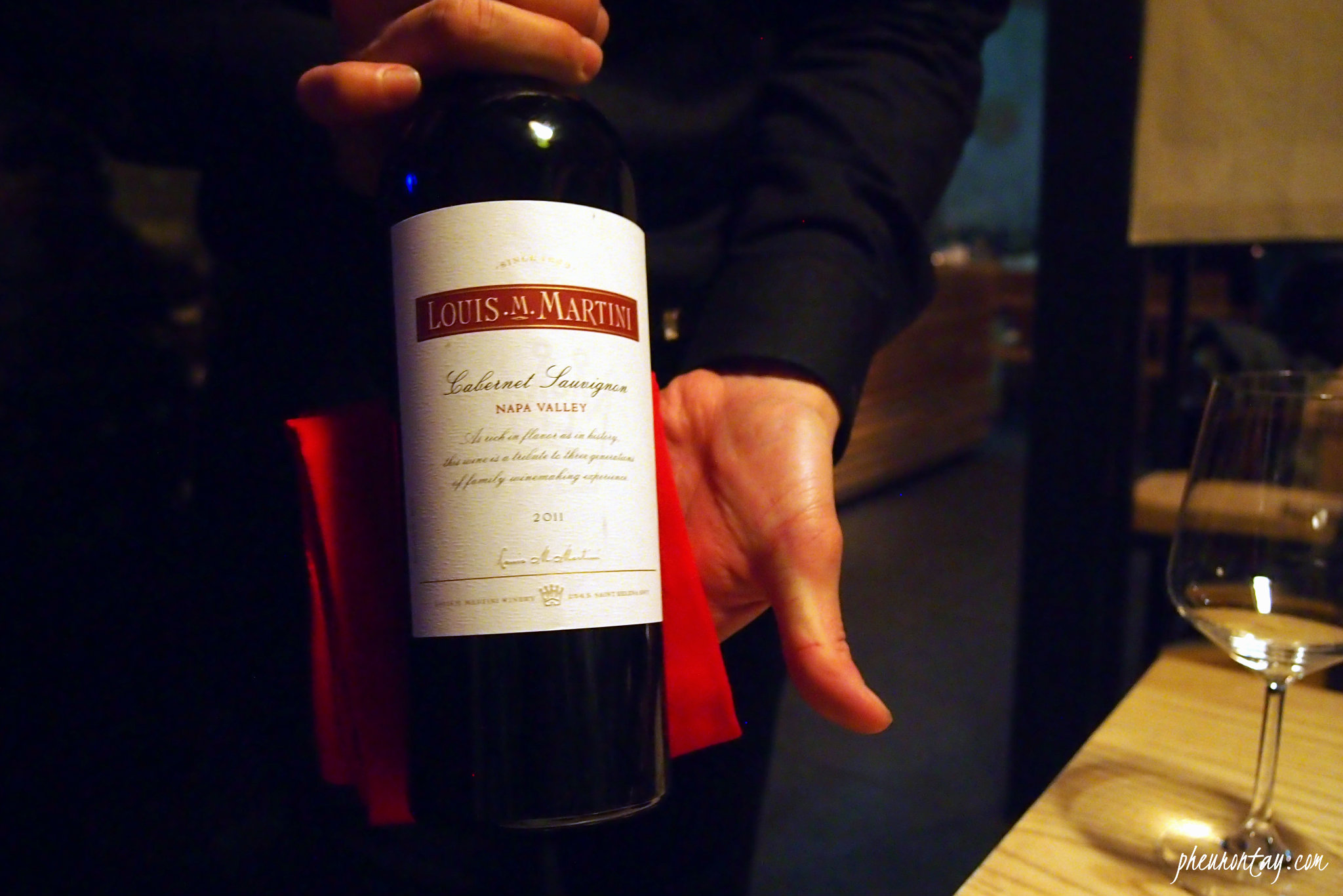 Wine of the night was a 2011 Louis Martini Napa Valley Cabernet Sauvignon recommended by the sommelier. It comes in a beautiful burgundy shade with a strong aroma of blackberries, cherries and dried herbs. A full bodied drink with a long finish. I liked it.