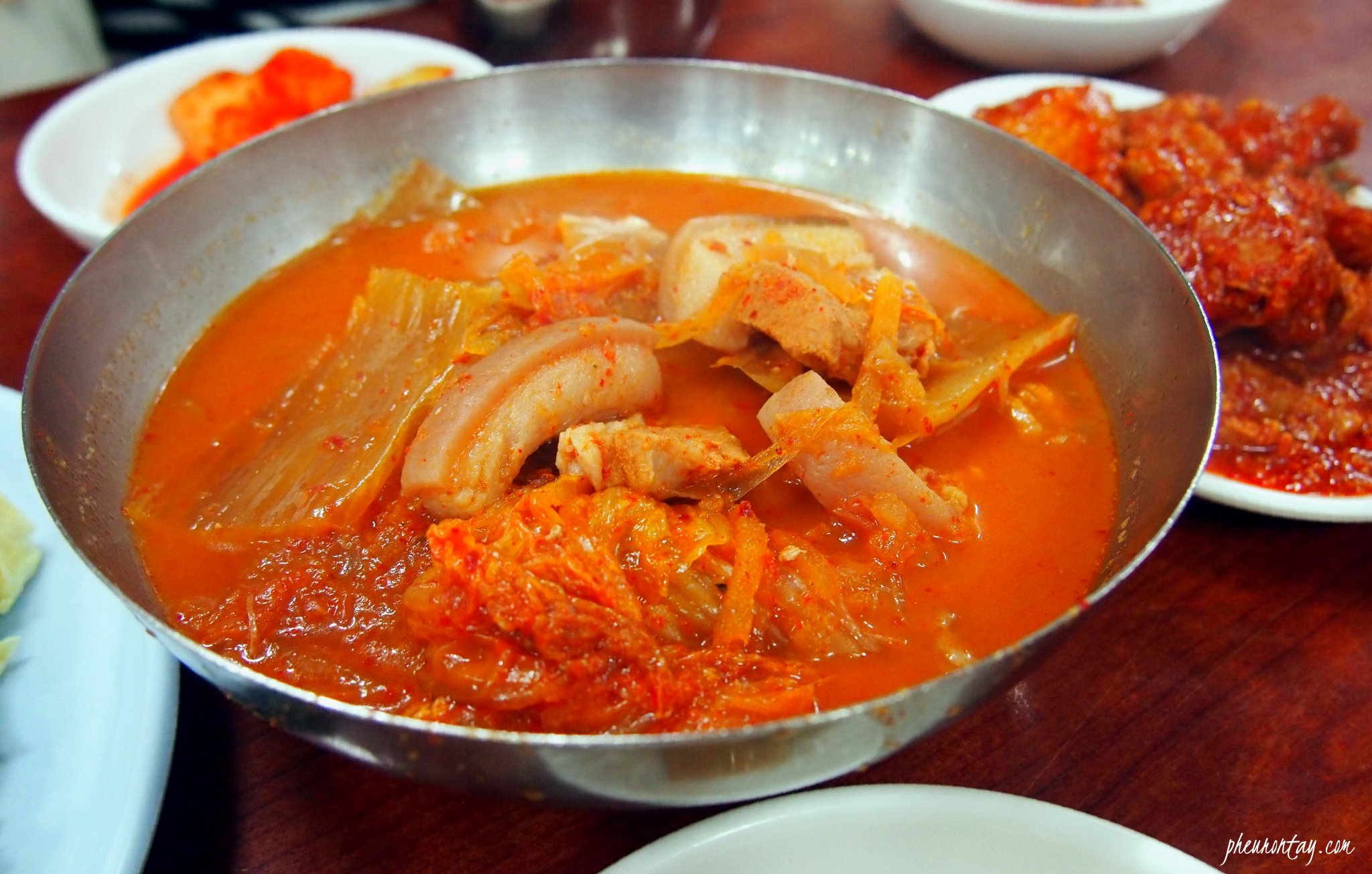Writer’s Note: The restaurant only serves Kimchi soup and the spicy stir-fry pork for almost 40 years. This shows their speciality in serving Kimchi Jjigae and Jaeyuk Bokgeum. It is my go-to when I crave a bowl of kimchi soup in Seoul. Soup is served in a huge naengmyeon bowl, but the first sip of the soup tells you the restaurant goes for both quality and quantity. It is the local restaurant I would recommend it to any first timers in Seoul. As for the big eaters, what are you waiting for? 🙂