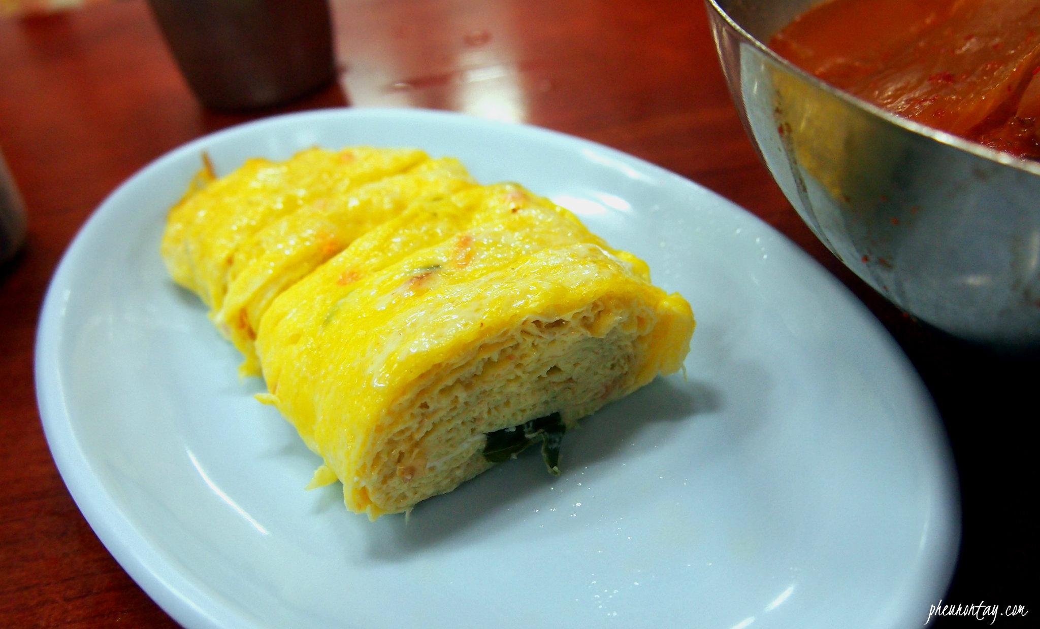 Another star side dish is this thick Gyeran Mari (계란말이). This Korean rolled omelette is a popular Korean side dish, usually appear in lunch boxes. It is so humble yet satisfying; I couldn’t imagine having Guldari’s kimchi soup and Jaeyuk Bokggeum without having their rolled omelette. A meal at Guldari is incomplete without the Gyeran Mari. Do you get me? LOLx. You don’t need to order this as they serve it as sides throughout the year. It is refillable too!