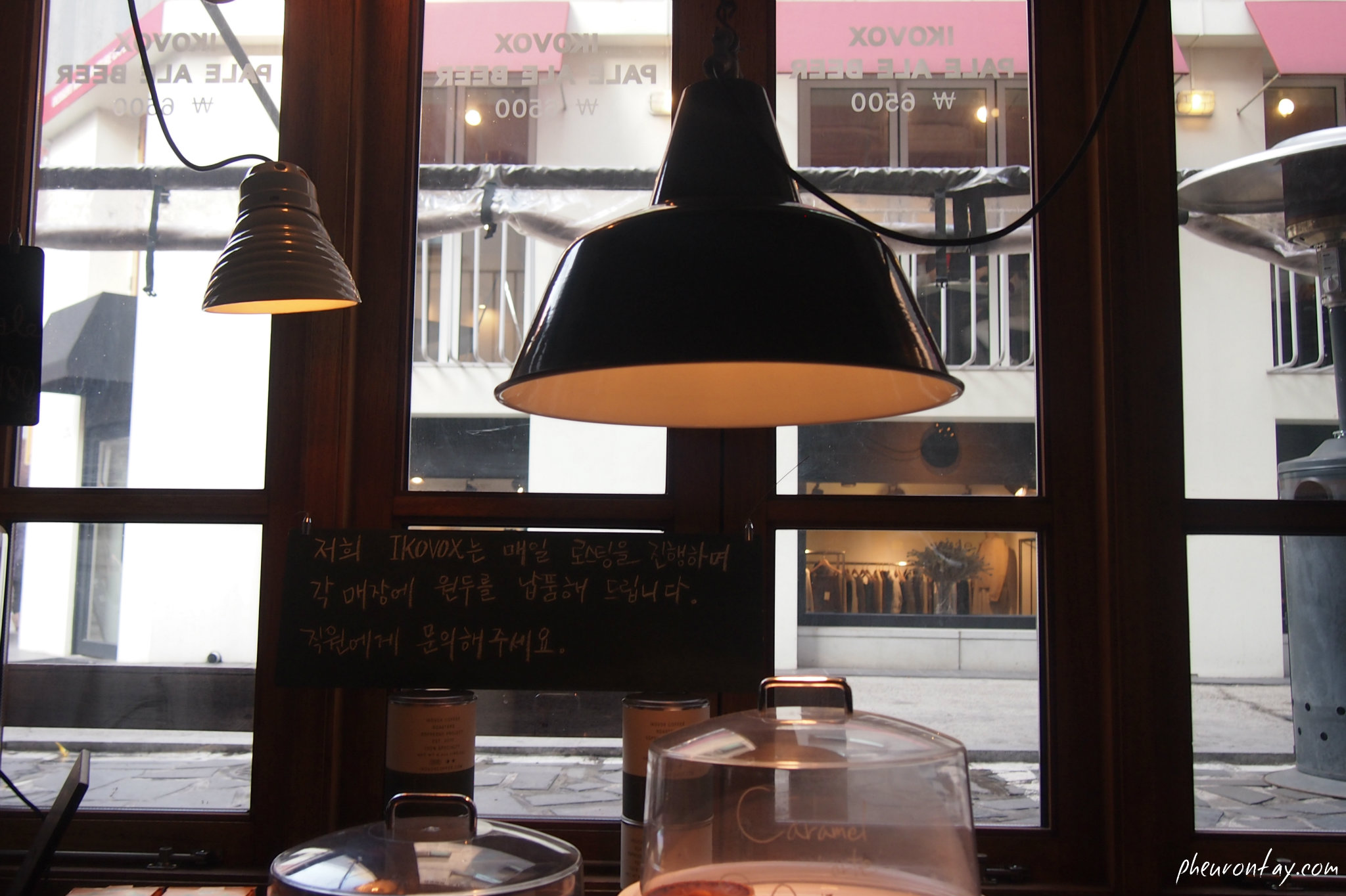 I was with the two coffee experts hailed from Singapore one fine winter afternoon at Garosugil so we decided to visit Ikovox Coffee, a cafe that roast it’s own beans. The entrance was brimming with that lovely scent of freshly roasted coffee before we stepped into the cafe.