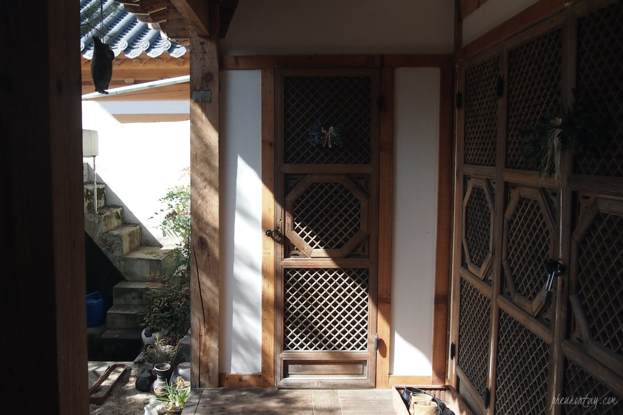 Sieondang 시은당 [pronounce as see-eun-dang] was definitely one of the best hanok guesthouses in Jeonju. It is a traditional hanok with an exquisite modern twist. The wood paper door, the spoon door lock, fine embroidery on the thick Korean bedding, the sights of warm sunlight falls onto the aged wooden floor, all scream tradition.