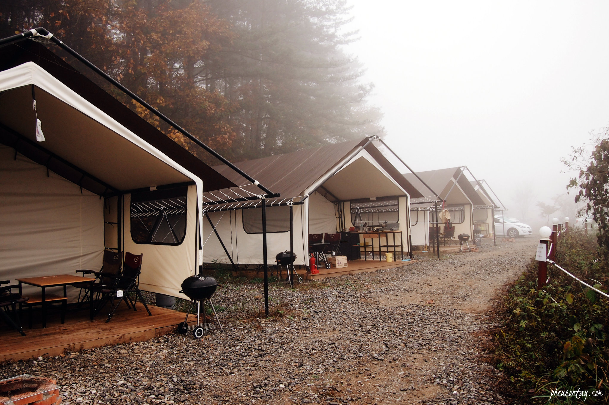One of the best activities to carry out during the season, in my opinion, is “Glamping”. If you haven’t heard of theย word “Glamping”, it is a shorthand for “Glamorous Camping”, a global trend that has tapped into the Land of Morning Calm in recent years. Mixing up the word “Glamorous” and “Camping”, Glamping is an idea of providing luxurious “tents” in the remote areas of the country, aiming to cater campers with comforts and convenience without giving up on civilization. Just bring your food, drinks and clothing and leave the rest (utensils, camping essentials, tent and etc.) to the glampsite owner! How convenient? ๐Ÿ™‚